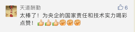 网友@天道酬勤:太棒了!为央企的国家责任和技术实力喝彩点赞!