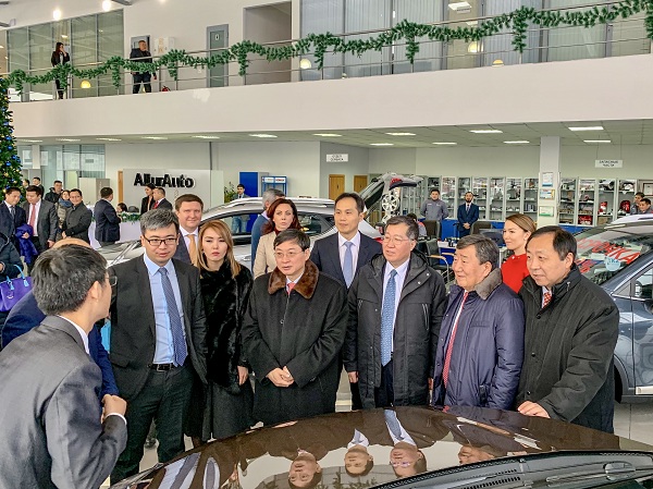 图为中国通用技术集团负责人一行参观ALLUR集团位于阿斯塔纳的汽车4S店。