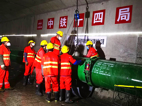 在有限施工空间内,建设者要运进单节长9米、直径0.8米、重达3吨多的管道。为了确保运输安全,项目部技术人员加工改良了平板车,借助洞室内预留的钢筋吊环,将管道运送至预定位置。管廊最大坡度高达15%,从起点到标尾垂直提升达550米,落差超过百层楼高,安装误差却不能超过2毫米,按照常规方法施工根本无法满足要求。最终他们决定对管径位置和高度分段进行检测,检测一段安装一段,同时使用管道定位仪及临时支墩等,防止管道发生偏移,确保管道精准对接。