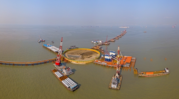 伶仃洋大桥是深中通道的控制性工程,主桥跨径1666米,为世界最大跨径海中钢箱梁悬索桥。主塔高270米,通航净高76.5米,桥面高90米,相当于30层楼高度,建成后将是世界最高海中大桥。二航局承建的S04合同段主要施工内容包括伶仃洋大桥东塔、东锚碇、上游侧主缆架设、钢箱梁安装、东泄洪区非通航孔桥下部构造等,线路全长3973米。此次施工的钢吊箱高14.5米、外径41.2米、重量近1800吨。