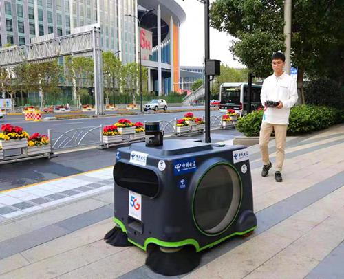 中国电信的5G扫地僧,自动避让参观人流,让进博会场馆更干净