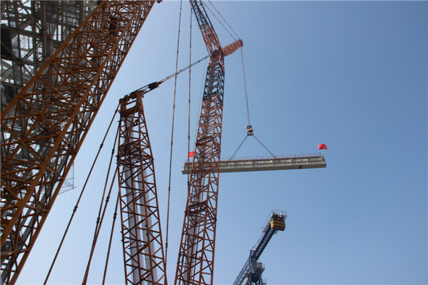 华电天津南港热电工程#1燃煤锅炉大板梁开始吊装