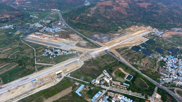 甘庄隧道出口连接着正在建设中的元江火车站。