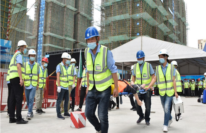 中建六局以“防风险、除隐患、遏事故”为主题,在合肥新站高新区合郢花园项目举行建筑工地支架坍塌事故处置应急演练,以增强企业安全防范意识和应急处置能力。