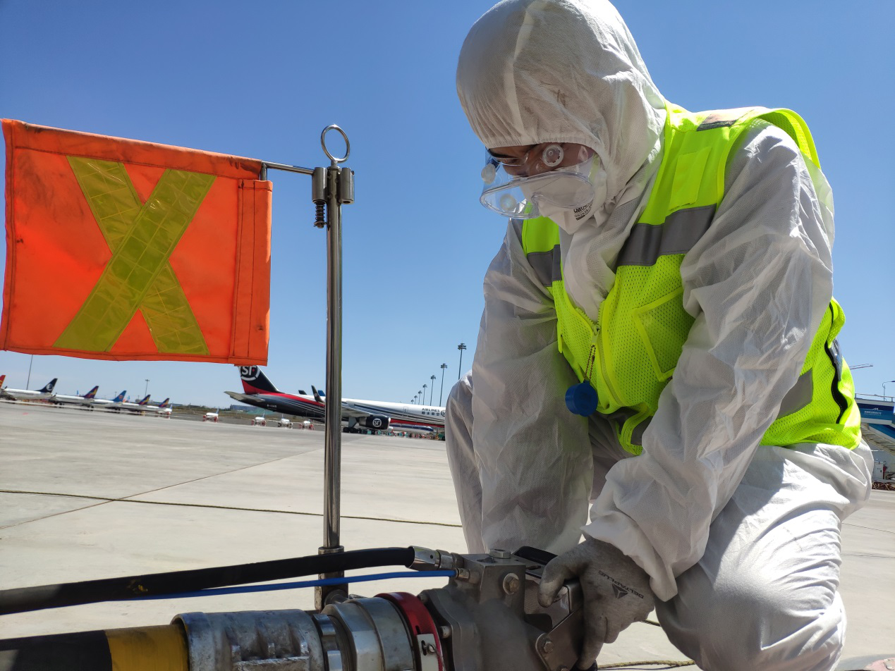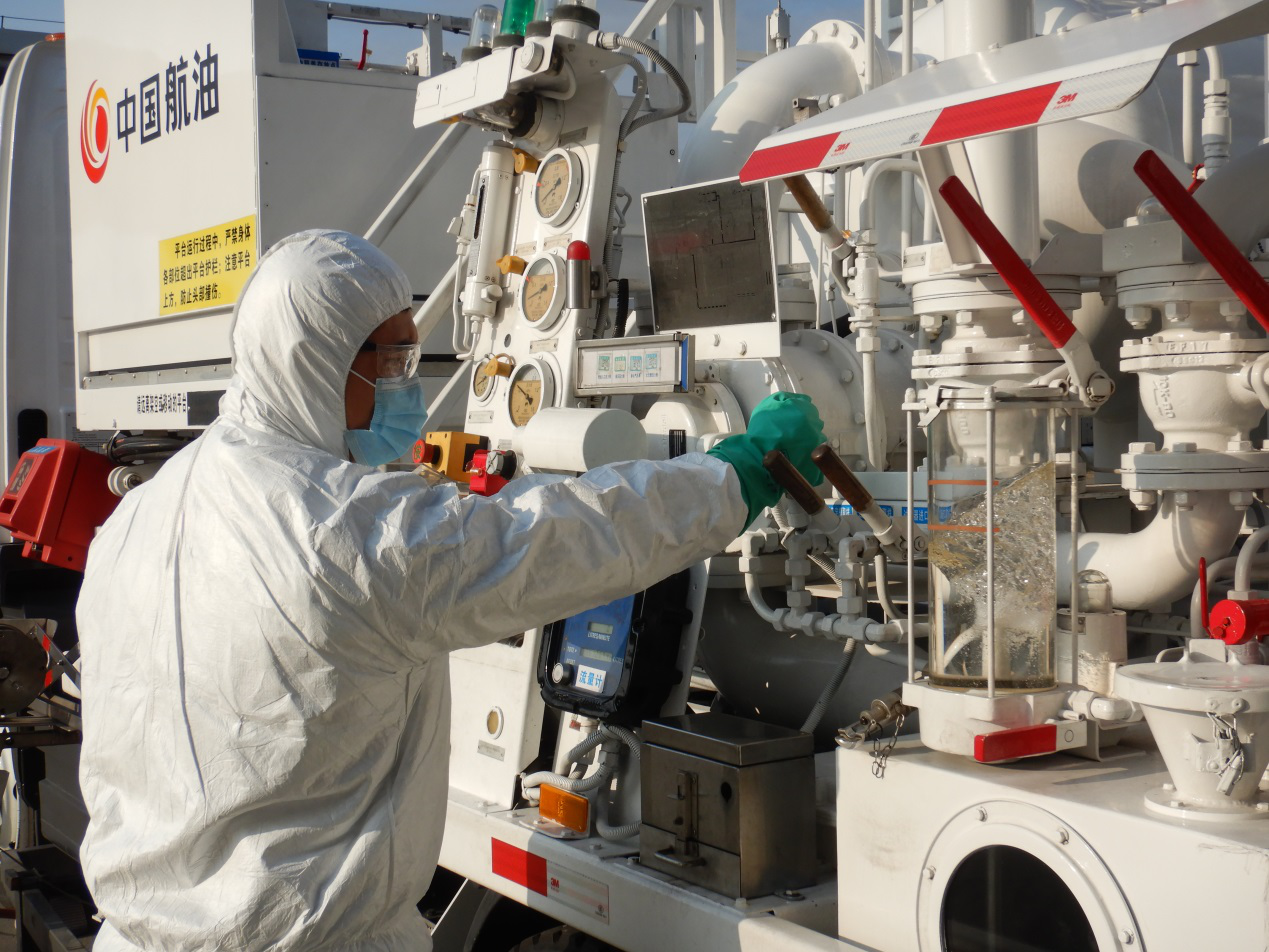 中国航油广东分公司加油员一级防护状态保障航油供应。