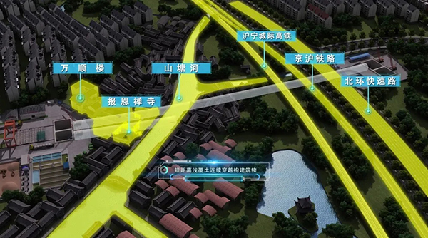 在桐泾路隧道方案没有确立以前,打通这条路要面临万顺楼、报恩禅寺等古建、山塘河以及运行中的沪宁城际高铁、京沪铁路、北环快速路等重大风险点。仅地上这些难点,每一项难度可以说都是“S级”,而且都集中在这短短的400多米长度内,尤其是沪宁城际铁路是一条运行时速350公里的高铁,更是容不得半点闪失。所以打通“断头路”不仅仅是决心的问题,更是对中国基建技术实力的考验。