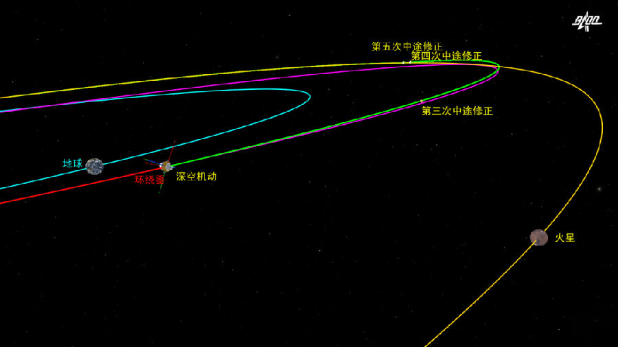 实施第三次轨道中途修正,是为了在深空机动后,对转移轨道再次进行微量调整,使火星探测器按照预定时间与火星交会。