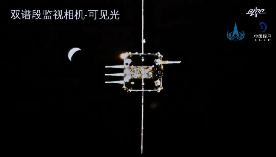 从上升器进入环月飞行轨道开始,通过远程导引和近程自主控制,轨道器和返回器组合体逐步靠近上升器,以抱爪的方式捕获上升器,完成交会对接。