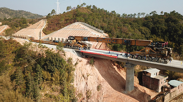 “此次完成最后一榀箱梁架设的陂塘大桥,与制梁场相距21公里,运梁过程中需穿越11座隧道,运距远、穿越隧道多,施工安全风险高、交叉作业干扰影响大。”中铁二十五局铺架现场负责人何波良介绍说。