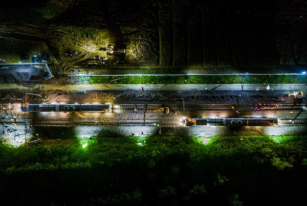 4月26日晚10点30分,随着中国铁路上海局集团有限公司东华地铁公司现场总指挥的一声令下,来自中铁四局等单位的土建、轨道、防护、精调等多个工种的1000余名铁路建设者迅速开展扒除、锯轨、线路拨移、钢轨合龙、填充道碴、大机捣固、开通试验等施工作业。