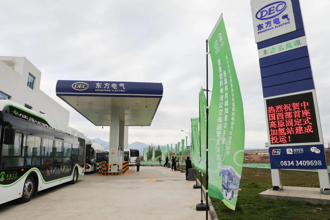 6月2日,西昌市氢燃料电池汽车示范项目启动仪式在四川省西昌月城加氢站举行,标志着由东方电气参建的中国西部高原首座标准化固定式加氢站正式投运。该站每天可加氢500公斤,最大满足每天50辆氢燃料公交车或100辆氢燃料物流车加氢需求,初期示范配套的10辆氢燃料公交车正式上路运行。