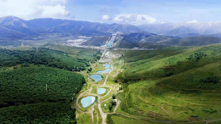 群山苍翠、层林起伏,绿草如茵,潺潺流水汇成生态湿地,映着云影天光,体育设施同自然景观和谐相融,人们既能尽享冰雪运动的无穷魅力,又能尽览大自然的生态之美……冰雪与自然美美与共,这离不开北京冬奥会张家口赛区生态环境建设工程中使用的生态修复系列技术。