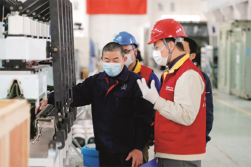 国网浙江电力共产党员服务队上门帮助企业检查用电设备。