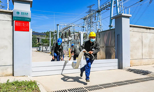 国网河南电力组织开展防汛演练,为变电站铺设排水管道。