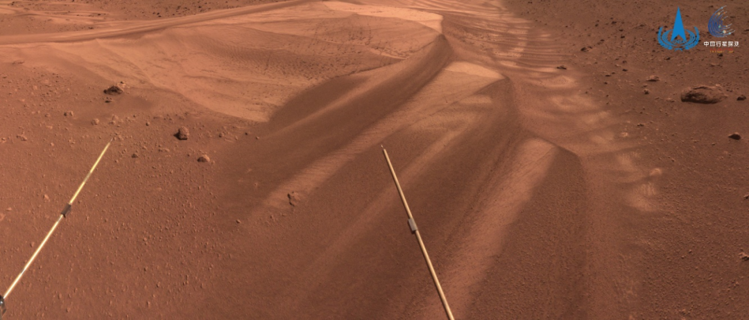 祝融号拍摄巡视区影像,图像为火星车进入冬季休眠状态前拍摄,展示了巡视区域一处沙丘地貌的局部特征。