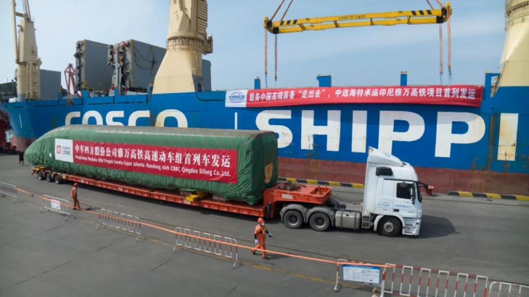 8月21日,我国出口印尼用于雅万高铁的1组高速动车组和1组综合检测列车在青岛港顺利完成装船,通过海运发往印尼。这是雅万高铁首批发运列车,标志着我国首次出口国外的高铁列车正式启运。