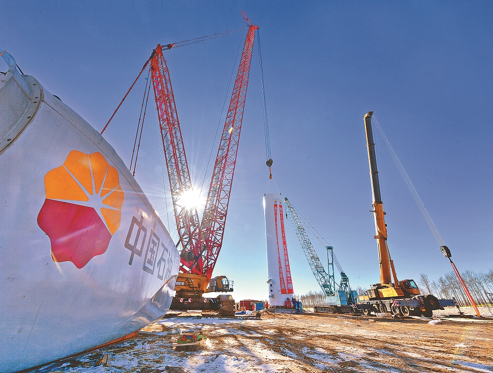 11月16日上午,在吉林油田乾情风场3号机组施工现场,中国石油首个风电项目首台风机顺利开吊,标志着吉林油田从传统石油行业向新能源融合发展迈出了崭新的一步。