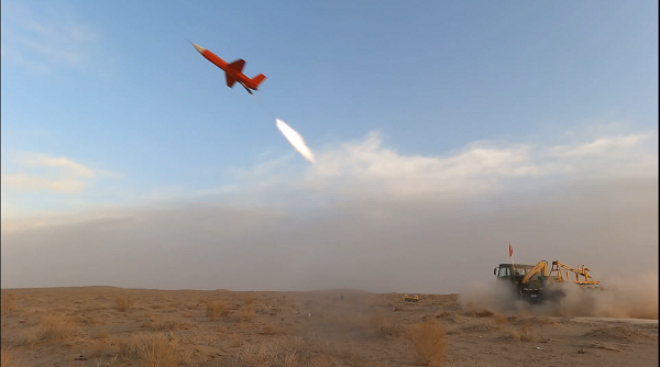 日前,在西北大漠边缘,“流星-260”在发射车上腾空而起,在湛蓝的天空画出一道美丽的弧线,俯冲、滚转、盘旋出一个优美的圆圈,最后下滑至预定点成功伞降回收。本次试飞的完成标志着航空工业试飞中心自主研制的新型高空、高速、大机动目标机取得圆满成功。
