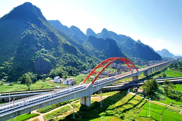 8月31日,随着CR400AF新型复兴号动车组从南宁东站驶出,由中国中铁旗下中铁二院设计,中铁一局、中铁二局、中铁五局、中铁电气化局、中铁广州局、中铁北京局、中铁上海局参建,中铁科研院监理的贵(阳)南(宁)高铁南宁至荔波段(以下简称贵南高铁南荔段)开通运营,标志着贵南高铁全线开通运营。