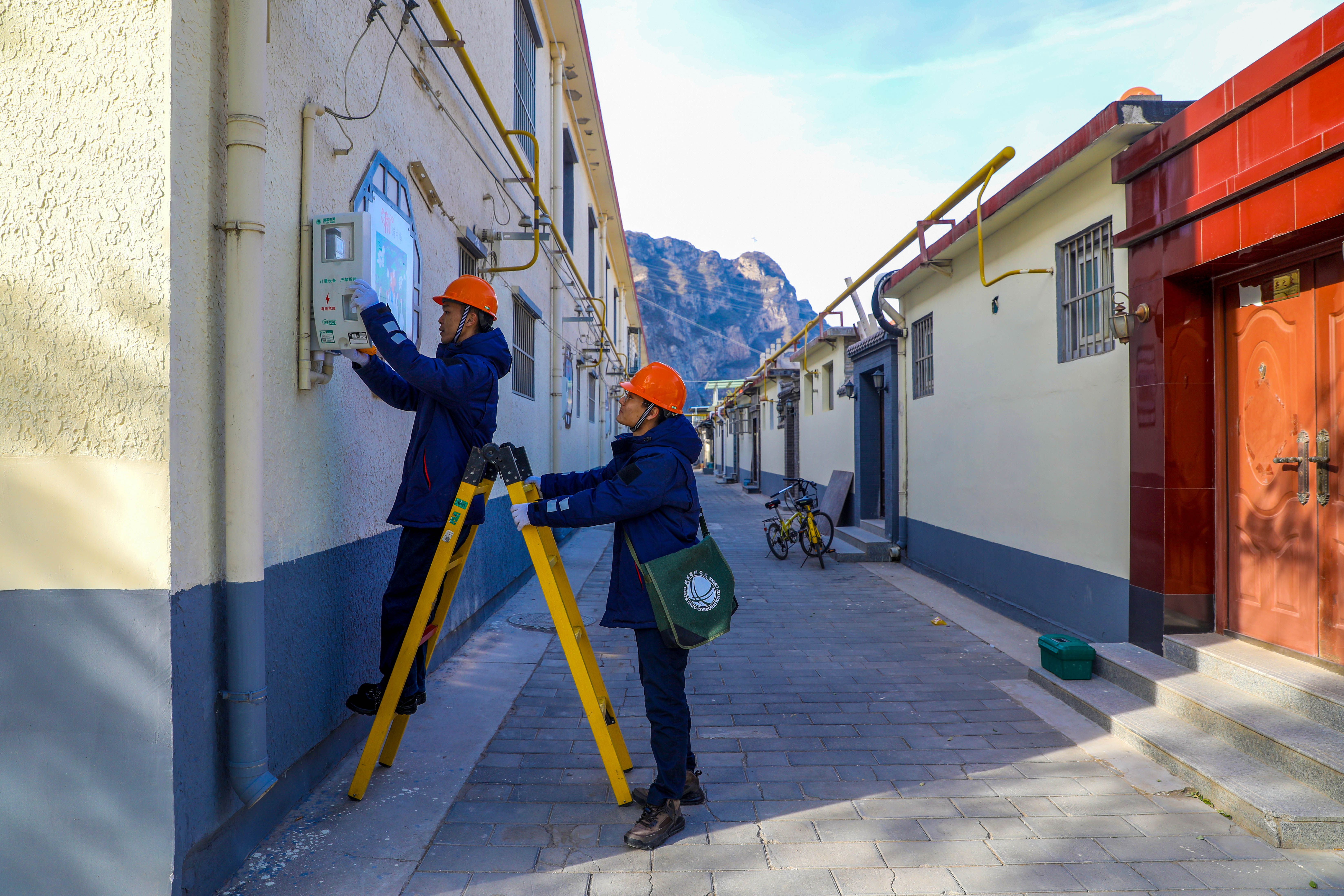国网北京门头沟供电公司员工在妙峰山镇水峪嘴村检查“煤改清洁能源”用电设备。