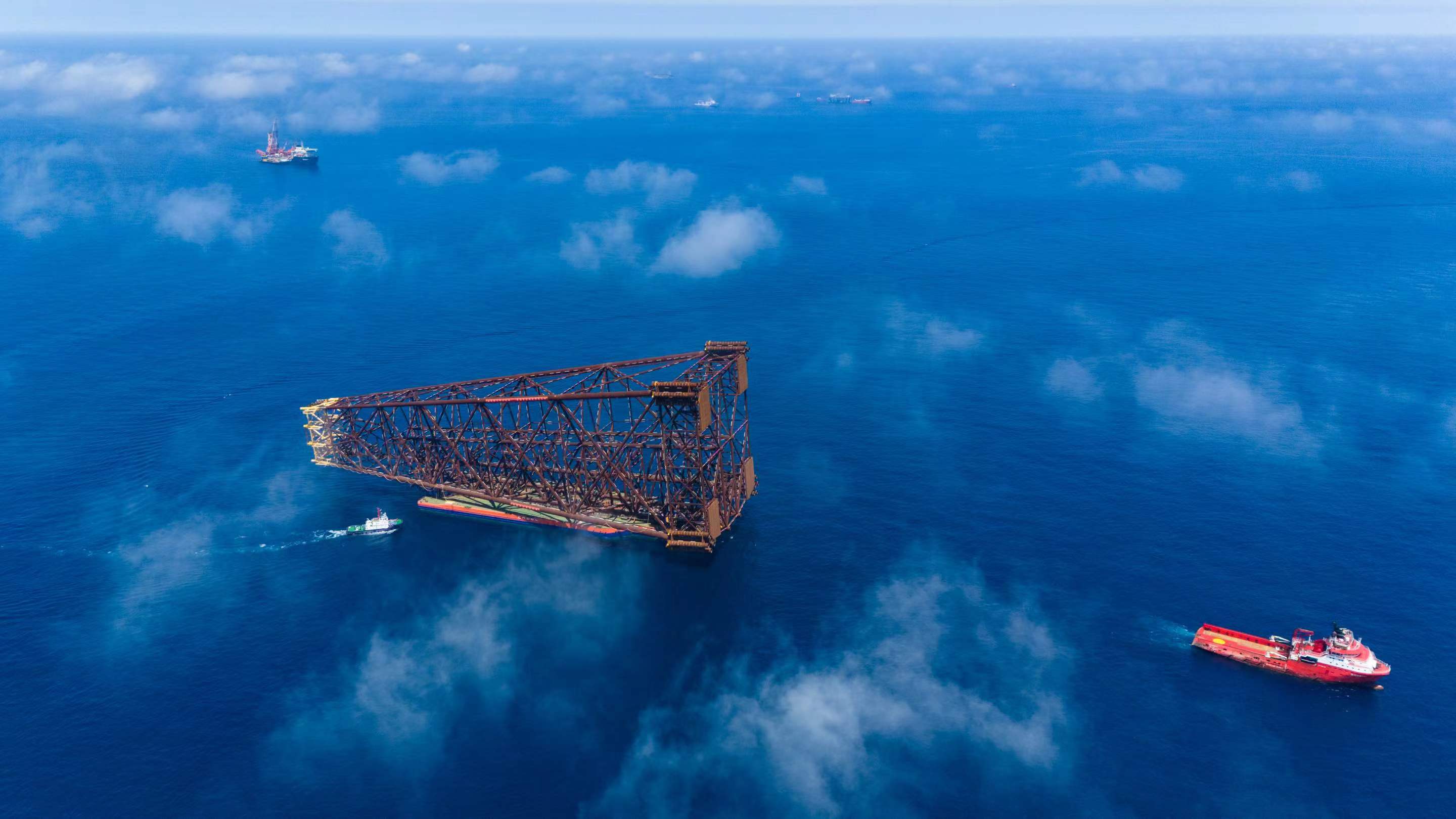 3月24日,总重量近37000吨的亚洲第一深水导管架——“海基二号”,开始进行海上安装作业,这是亚洲首次在超过300米的海域进行固定式导管架安装作业,安装成功后将刷新作业水深、高度、重量等多项亚洲纪录,安装就位过程预计将持续3天。