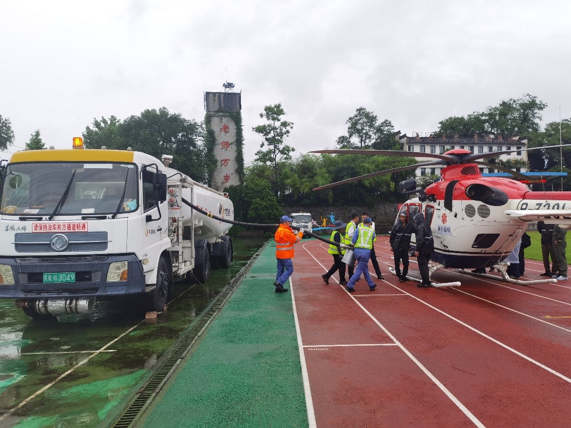 在地方防汛救灾的关键时刻,航油铁军紧密配合地方政府,加强与地方政府的沟通协作,共同构建安全防线。黄山供应站迅速响应市防汛抗旱指挥部任务,主动了解具体要求,启动应急救援程序,在做好正常保障的同时,抽派骨干力量,赶赴抗洪救灾第一线,高质量完成抗洪救灾直升机的供油保障任务。梅县供应站积极与市应急管理局等部门的紧密沟通,在完成对梅州机场临时停靠救援飞机的保障工作后又前往平远县救灾现场为救援直升机提供供油保障,经过五天的应急救援,高效保障救援飞机11架次,保障南航通航救援自提油6车次,用实际行动践行了航油铁军“飞机飞到哪里,中国航油就加到哪里”的庄严承诺。在洞庭湖一线堤防发生决口险情后,岳阳供应站闻“汛”而动,立即成立救援保障小组,积极配合政府抢险救灾工作,高效保障救援直升机6架次,确保应急救援空中“生命线”畅通无阻。泉州航空加油站积极与机场单位联动协作,建立信息共享和机制,实时关注天气预报和航班信息,迅速传达恶劣天气预警信息,强化在出现异常天气、航班大面积延误等情况时的保障和应急处置。