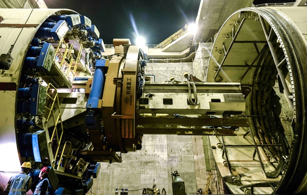 “初心号”全部部件验收、拆解工作在湖南长沙盾构机装配总厂完成后,于2月16日全部运抵穿黄隧道河西始发井施工现场,开始系统组装。历经连续30天的连续奋战,“初心号”各零部件陆续安装就位,在盾构穿黄隧道始发井顺利合龙。