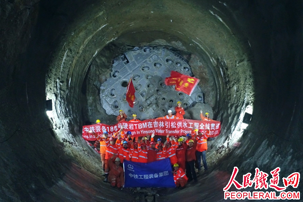 中国人到底能否研制出自己的TBM?检验答案的这一天很快到来,2014年1月,吉林省有史以来投资规模最大、输水线路最长、受益面积最广、施工难度最高的大型跨区域引调水工程——吉林省中部城市引松供水工程(简称“吉林引松”)TBM施工标段面向全球公开招标。经过多次优化设计,经过业主与专家的评定,中铁装备最终拿到了国内首台国产TBM的订单。一年以后,依托国家“863、973”计划自主研制的直径8.03米岩石隧道掘进机(TBM)—“永吉号”成功下线,应用于吉林引松供水工程总干线四标项目,这是全线地质最复杂、施工难度最大的标段。当年5月始发的“永吉号”,历经多处溶腔溶洞群、碳质板岩段、断层破碎带、土层入侵洞段、特大涌水涌泥等不良地质,一路破除险阻,在国内施工历史上首次成功穿越长达7000米的灰岩岩溶区,于2016年6月、2017年11月分别创下了月掘进1226米、1318.7米的全国纪录,实现了一系列国内TBM施工史上的重大突破。