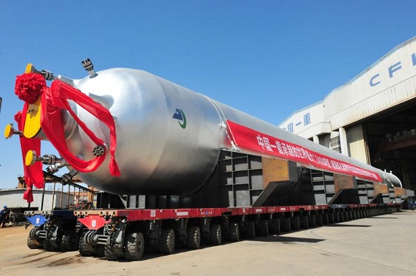 2018年4月11日,由中国一重承制的世界最大石化技术装备---镇海沸腾床渣油锻焊加氢反应器在大连核电石化公司完工发运。该装备的成功制造标志着我国超大吨位石化装备制造技术再次领跑国际,彰显了“大国重器”的实力。同时,为中国石化产业的蓬勃发展增添了新的动能。