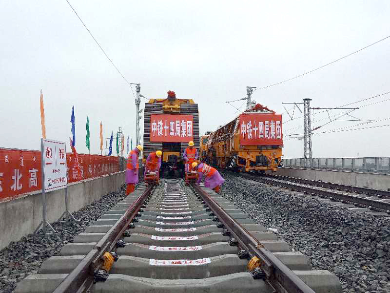 5月22日,随着中国铁建所属中铁十四局的CPG500型铺轨机把最后一组500米长钢轨安全平稳地铺设到轨枕上,内蒙古自治区连接东北地区的首条高铁——辽宁新民北至内蒙古通辽高铁全线铺轨完成,与在建的京沈高铁正式“牵手”,为全线开通运营奠定了基础。