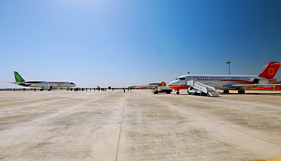 2018年10月27日,C919大型客机第二架机从山东东营胜利机场起飞,历经2小时6分钟飞行,于上午11点09分平稳降落在江西南昌瑶湖机场,圆满完成本次转场飞行任务。此前,两架ARJ21新支线客机已先行飞抵瑶湖机场开展适应性检查工作,为后续交付试飞做准备。此次联合转场后,国产大飞机将在南昌瑶湖机场开展试飞活动。该机场将为国产大飞机提供专业的试飞场地、试飞空域及其他保障资源。
