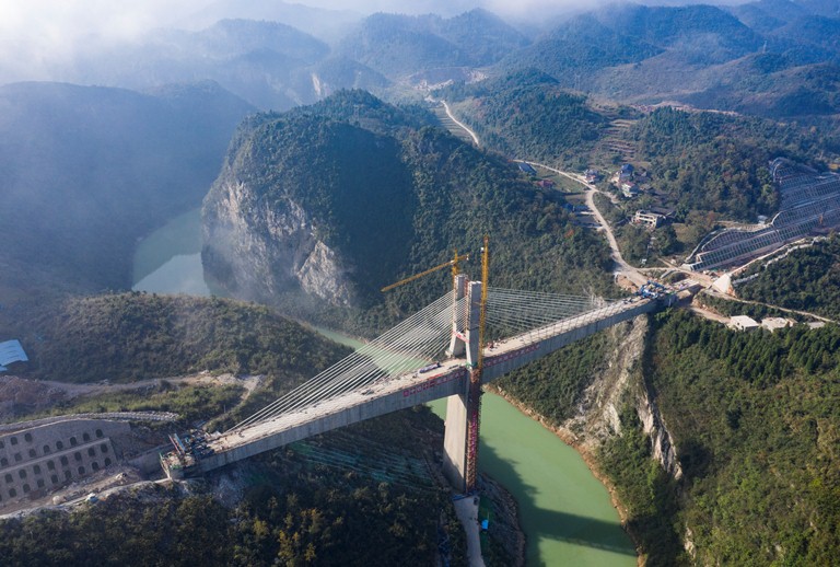 10月29日,由中国铁建所属十一局五公司承建的黔(江)张(家界)常(德)铁路长湾澧水大桥合龙。其不等跨长度等三项施工创造了新的世界纪录,标志着我国桥梁建设又一次取得新突破。