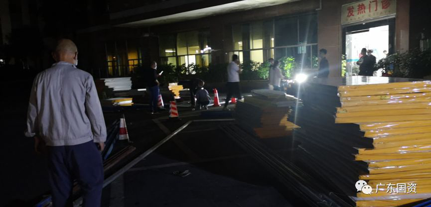 在建筑施工上,建工集团所属机施公司主动联系省人民医院,承担施工任务,在不到48小时的时间内,两间急诊板房拔地而起,搭建的板房和安装的设施全部交付省人民医院使用。粤科金融集团投资企业科顺防水为支持医院地下室基础地面防水建设,企业员工主动加班,以最快速度将200吨防水材料从高明生产基地发往武汉雷神山医院建设工地。广晟公司控股企业佛山照明得知抗疫一线缺少部分消防应急类灯具,马上启动应急预案,紧急调运灯具及人员,连夜组织吸顶灯、灯管、支架、标志灯、应急灯等灯具装车,点亮施工现场。