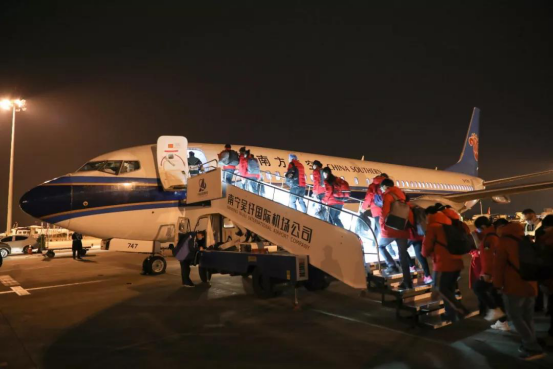 广西机场管理集团南宁机场在1月26日,将首批应急防控物资在装机飞往湖北武汉,在1月27日,为首批援鄂医疗队的137名医疗工作人员及5吨医疗物资开设“绿色通道”,助力医疗队驰援武汉。