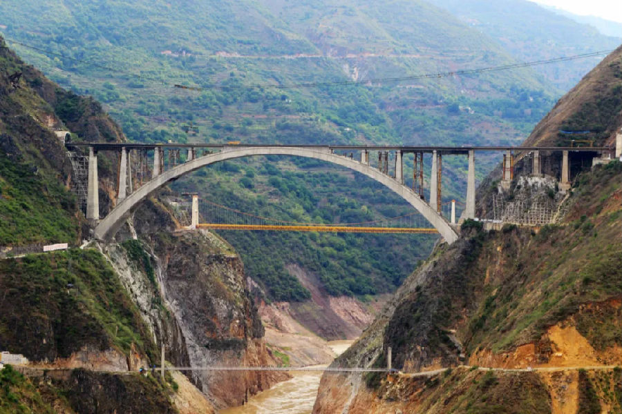 这座澜沧江特大桥创了三项“世界第一”建桥记录。一是澜沧江特大桥采用“二次竖转”工法施工,在世界建桥史上尚属首次;二是该特大桥“二次竖转”角度之和达130度,其竖转角度目前在世界上最大;三是大桥单边竖放重量达2500吨,也是世界桥梁施工之最。创三项“世界第一”建桥记录的澜沧江特大桥主体工程完工,为我国在高山峡谷区和风口处建设大桥积累了宝贵经验,标志着我国拱桥建设处于世界领先水平。