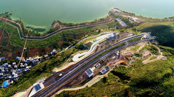 环水保管理方面。项目建设过程中始终坚持不扩大施工范围,不越界用地,坚决不占用或临时占用抚仙湖及星云湖保护区用地,优化增设地表、桥梁雨水径流收集系统,不向抚仙湖、星云湖及其河道排放污水,严格执行环水保监测;在有人工作和生活的地方就设三级沉淀池、垃圾处理池,做到污水零排放;桥梁施工场站的建筑垃圾,充分利用弃土场空间深埋做无害化处理,混凝土块清运至沙石材料厂进行处理,生产成机制砂二次利用。隧道施工采取边坡开挖一级、防护一级、绿化一级的措施,最大限度地减少对地表植被的扰动和破坏,实现了“绿色进洞”。