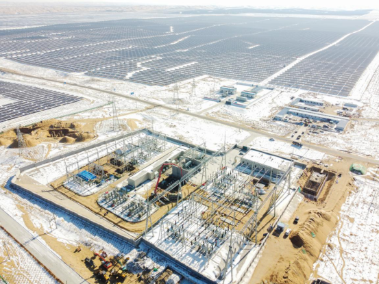 近日,万成功至中广核1号光伏升压站成功送电,标志着全国最大沙漠集中式光伏发电基地——达拉特光伏领跑基地二期1号项目顺利并网。