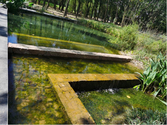湿地净化区也是西南湖的重头戏,位于公园中部,是南湖景区水生态净化工艺的示范区,占地面积约7100平方米。本区在最大限度保留现有乔木的基础上,结合微地形设计构建台地陂塘。每一道工序都需精心策划、科学组织,稍有不慎,就可能面临全面返工、推倒重来的风险。湿地净化区由沉淀曝氧、潜流台地及陂塘净化三大部分组成,通过土壤、火山岩、微生物及水生动植物的共同作用高效净化西南湖水体,为西南湖公园内部水系提供了洁净水源,同时也为公园内营造舒适的多样性亲水空间奠定了基础。湿地净化示范区的建立,为南湖景区水生态修复提供了技术参考依据。