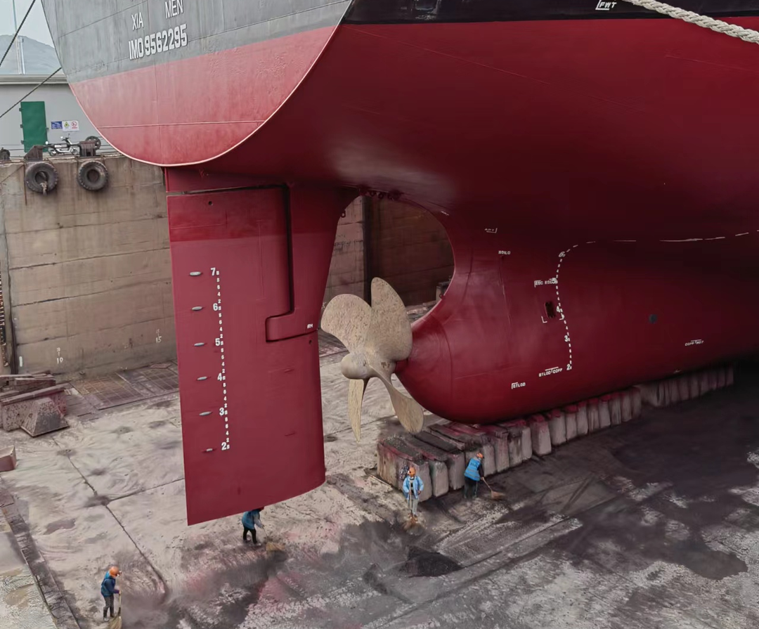 自2022年底开始至今,海运集团对“金海辉”等6艘坞修船舶,投入比原来高60%的成本,采用高效防污涂层,使用优良的船壳打砂、喷涂工艺减小船体的阻力,及时进行船壳水下清污作业等,更有效地抑制海洋生物生长,从而使船舶水线下表面保持更加光滑,大大减少船舶航行的阻力,减少船舶燃油的耗量。