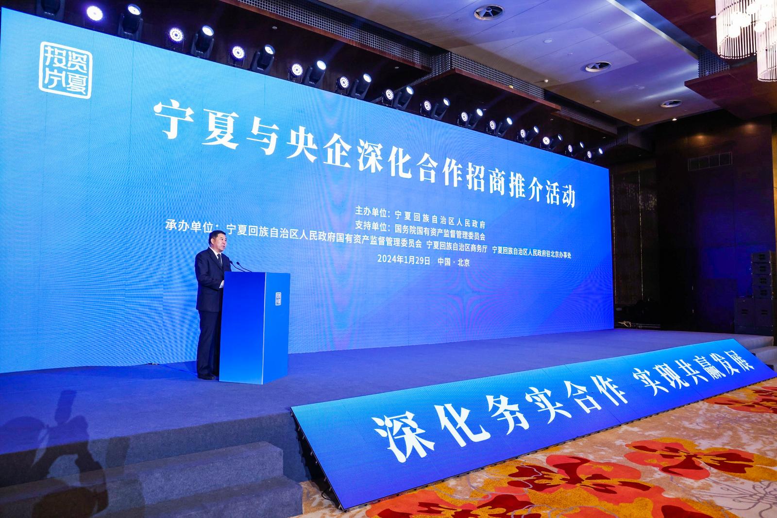 1月29日上午,宁夏回族自治区人民政府在北京以“深化务实合作 实现共赢发展”为主题,举办央企地方深化合作招商推介活动,48家央企110余位企业负责人及有关同志参加会议,旨在进一步搭建宁夏与央企互动交流平台、促进深度合作、实现互利共赢,携手共建黄河流域生态保护和高质量发展先行区,助力全面建设社会主义现代化美丽新宁夏。