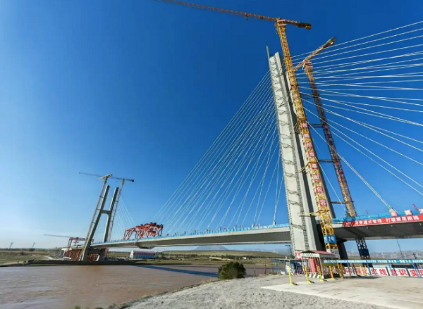 10月9日,包银高铁乌海黄河特大桥顺利合龙贯通。乌海黄河特大桥坐落在内蒙古自治区乌海市与宁夏回族自治区石嘴山市交界处,全长2190多米,是内蒙古第一座铁路斜拉桥,也是包银高铁全线桥塔最高、跨度最大的桥梁,有着包银高铁“黄河第一跨”美称。乌海黄河特大桥横跨内蒙古、宁夏两地,它的顺利合龙贯通标志着包银高铁全线桥梁主体工程顺利完成,也为后续铺轨奠定了坚实基础。