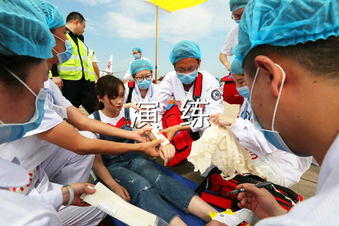 演练设置了模拟旅客60人,其中重伤旅客1人,中伤旅客2人,机组8人,无机组人员受伤。模拟人员全部由东航、南航、国航客舱服务部员工扮演,便于各单位深入换位思考,提高安全意识和实战能力。
