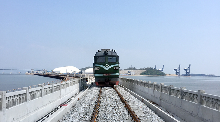 惠州荃湾煤炭码头铁路进港线工程,位于广东省惠州市惠阳区东南部的大亚湾石化区。线路自惠大港货物支线K5+100处接轨,经水深1.0m~2.0m浅海区域,终点至荃湾煤炭码头港区纯洲火车站,进港线全长1.817km,其中区间路基长0.387km,跨海大桥长1.430km。