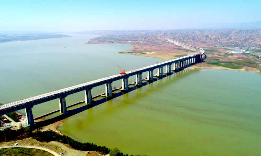 三门峡黄河公铁两用大桥公路桥面板架设完成