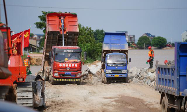 中国安能24小时不间断抗洪抢险 鄱阳县决口封堵进占50米