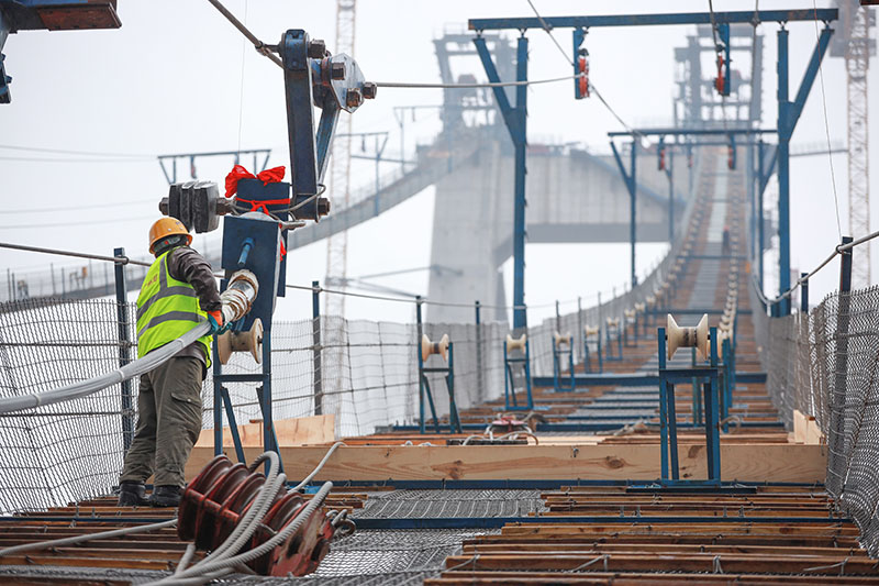 贵州瓮开高速开州湖特大桥开始架设主缆