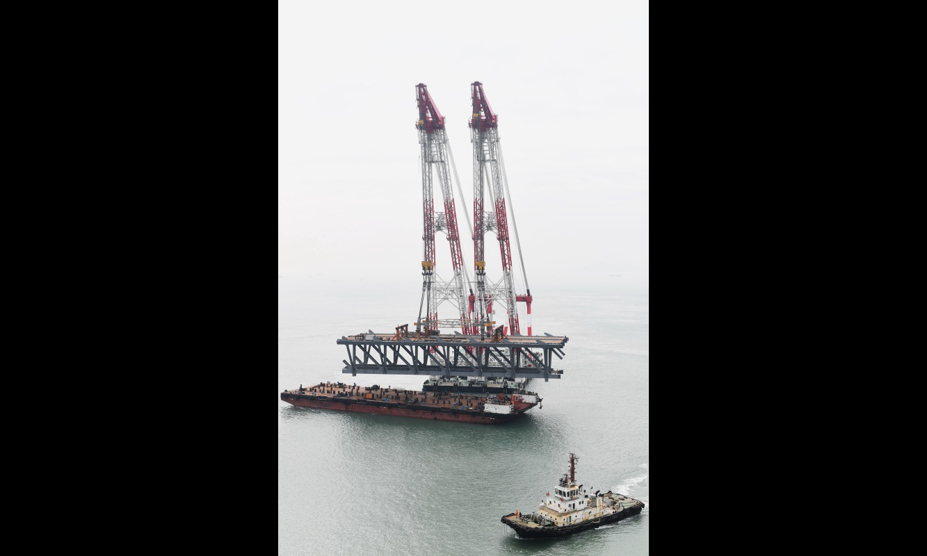 平潭海峡公铁两用大桥首跨3400吨钢桁梁成功架设