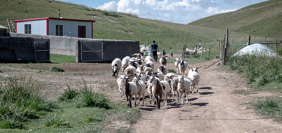 “每次看到悬挂这样条幅的大卡车,牧民们就知道他们的牛羊肉有销路了。”泉吉乡冶合茂村党支部书记旦木正说。
