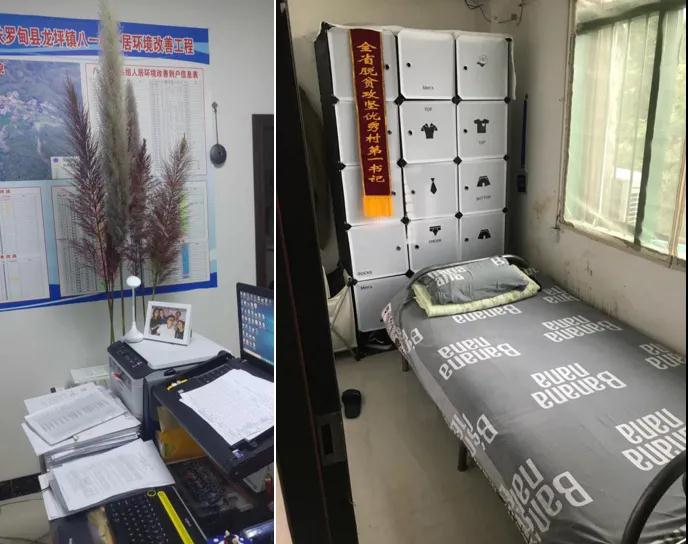 四周绿竹环绕的八一村村委会驻点,原是村里废弃的小学。2018年7月,刘骋从北京来到八一村,这里就是他办公室和住宿地。约4平方的狭长空间,就是卧室,仅能放下一张单人床。和卧室一墙之隔,则是他的办公室。靠墙角摆放的干燥粉红色芦苇,是刘骋自己从山上摘的,他说:“我觉得这比什么装饰都好看。”