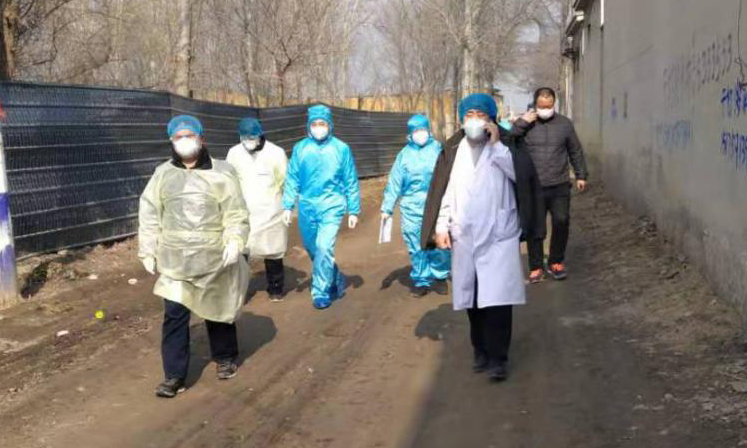 1月31日,河北省南宫市人民医院到垂杨赵家营下乡,排查发热病人。